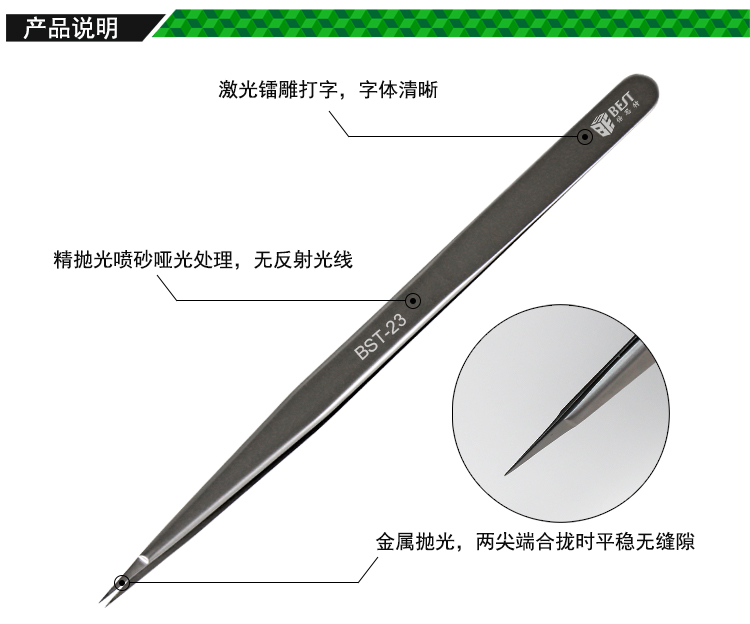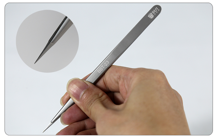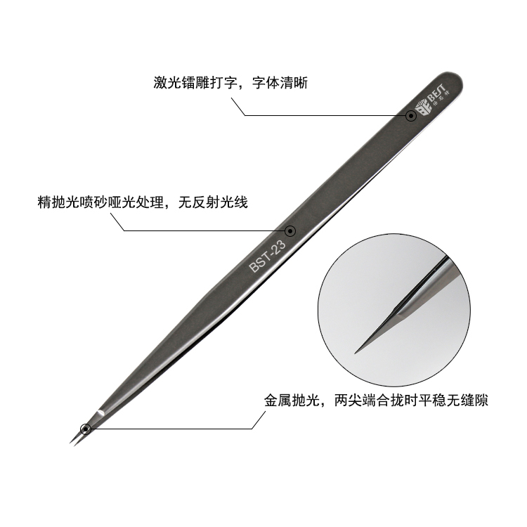 返回当前位置: 首页 / 产品中心 / BST-23 指纹飞线镊子 亚光镊子 不锈钢镊子 扁尖头抛光直镊子