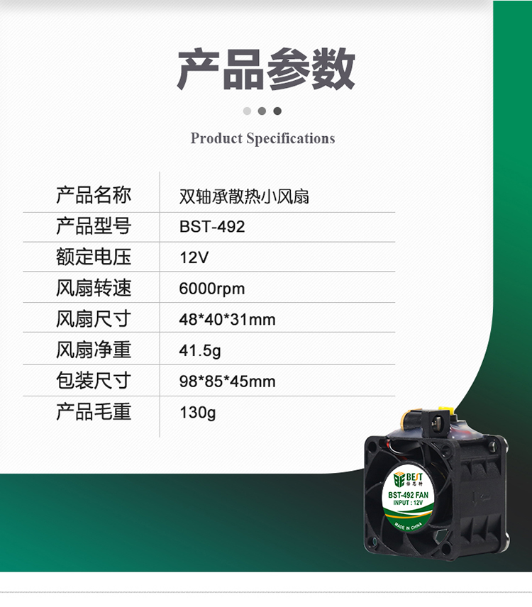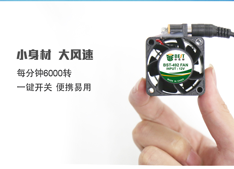 ? 产品名称: 双轴承散热小风扇? 产品型号: BST-492? 产品类别: 电动工具系列