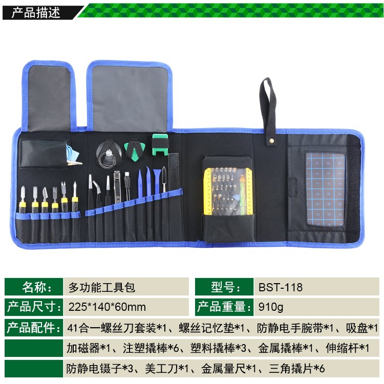 ? 产品名称: 多功能工具包? 产品型号: BST-118? 产品类别: 拆机工具系列