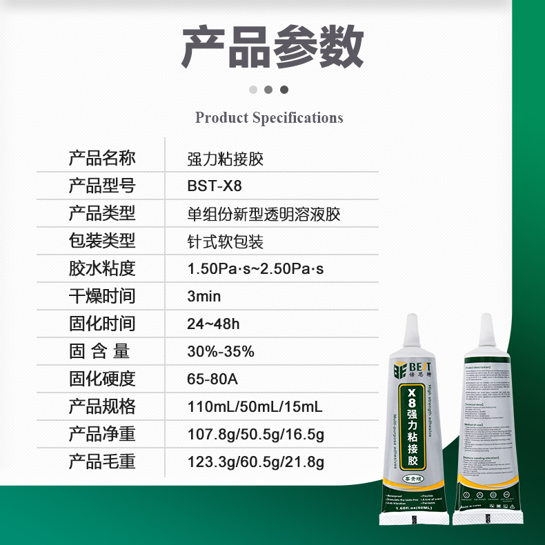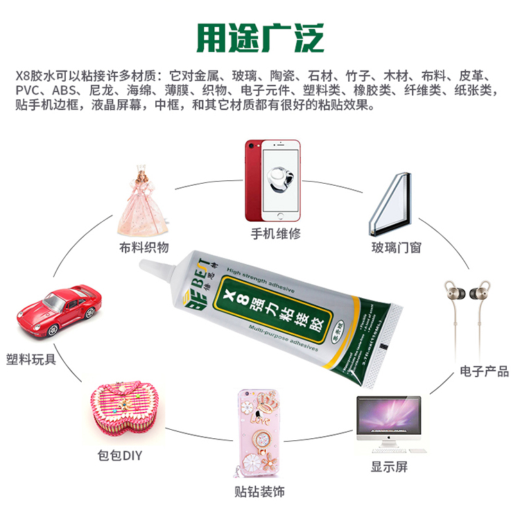 返回当前位置: 首页 / 产品中心 / BST-X8 强力粘接胶 多功能软性透明胶水(15ML/50ML/110ML)