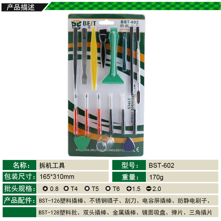 ? 产品名称: 拆机工具17pcs? 产品型号: BST-602? 产品类别: 拆机工具系列
