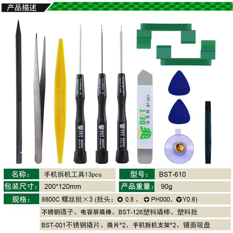 ? 产品名称: 拆机工具13pcs? 产品型号: BST-610? 产品类别: 拆机工具系列