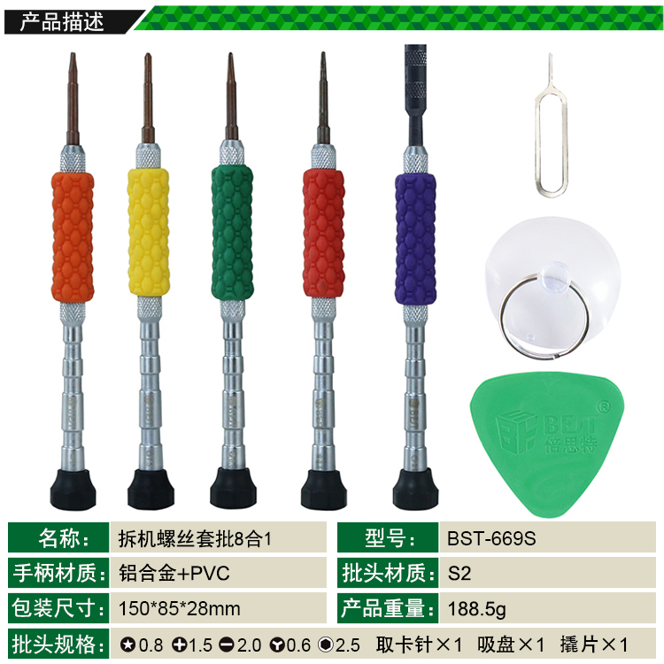 ? 产品名称: 拆机螺丝套批8合1? 产品型号: BST-669S? 产品类别: 螺丝批系列