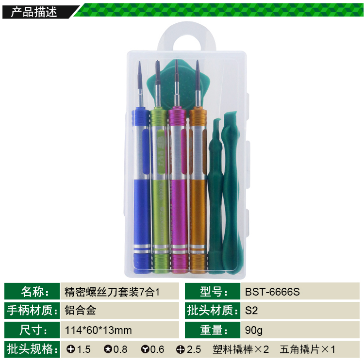 ? 产品名称: 拆机螺丝套批7合1? 产品型号: BST-6666S? 产品类别: 螺丝批系列