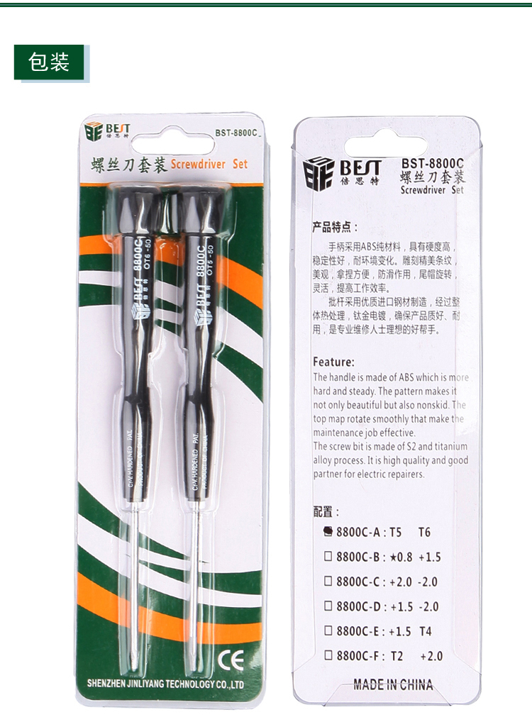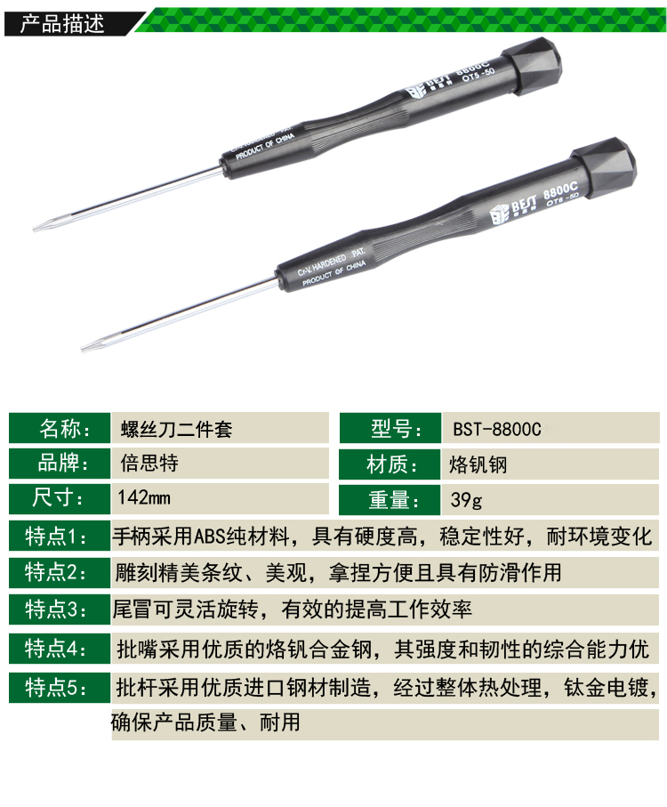 ? 产品名称: 螺丝刀套装二件套? 产品型号: BST-8800C? 产品类别: 螺丝批系列