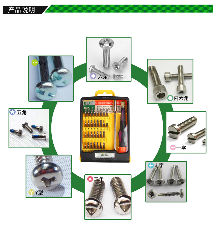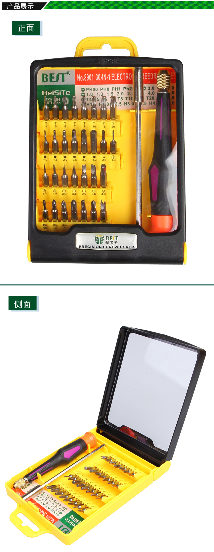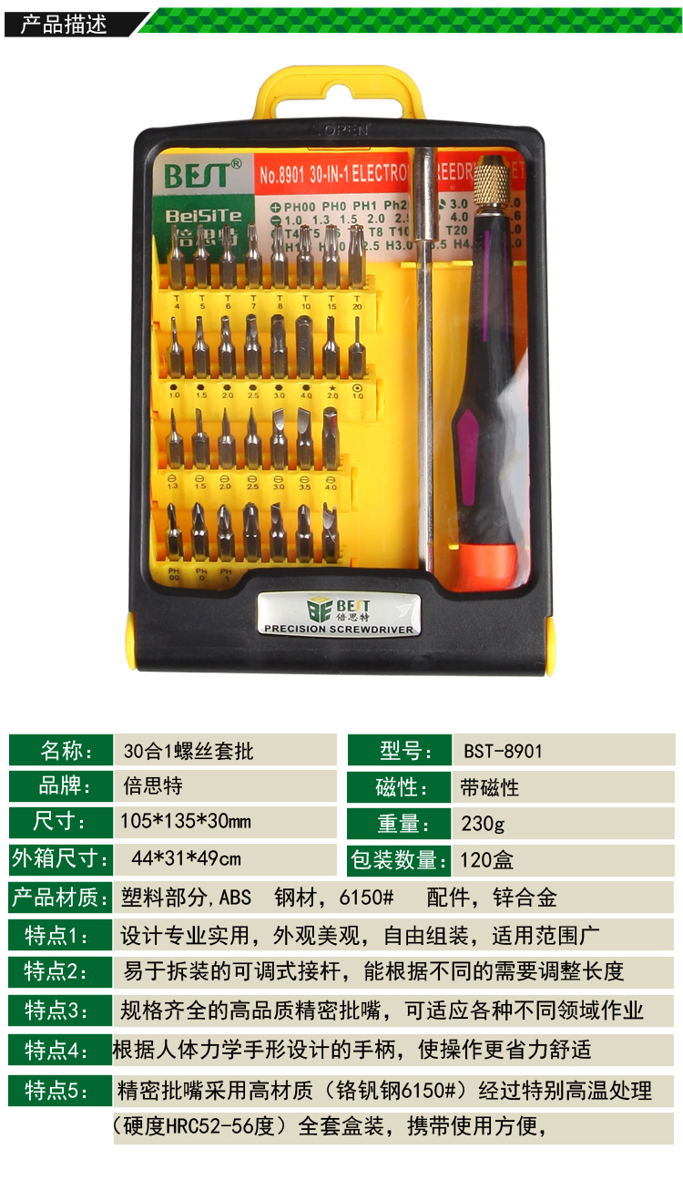 ? 产品名称: 螺丝刀套装30合1? 产品型号: BST-8901? 产品类别: 螺丝批系列