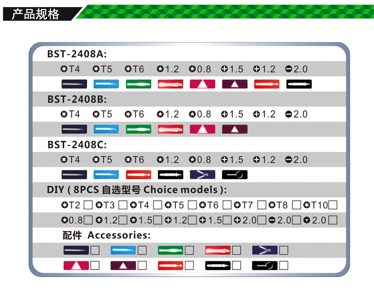 ? 产品名称: 多功能套批 拆机工具? 产品型号: BST-2408? 产品类别: 拆机工具系列