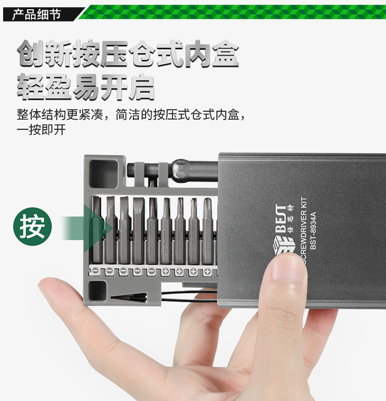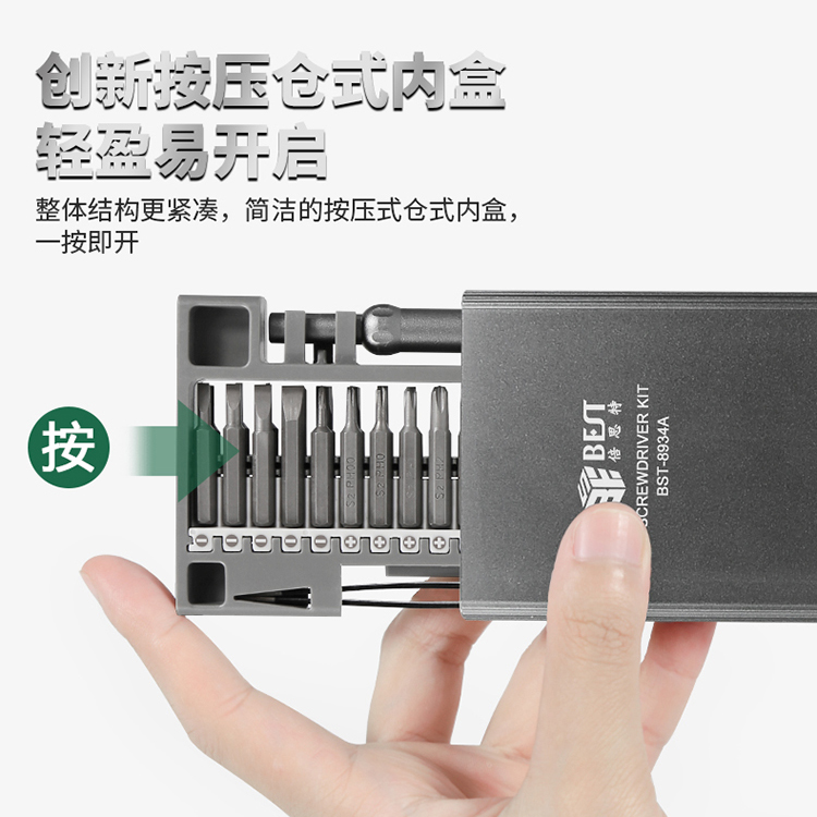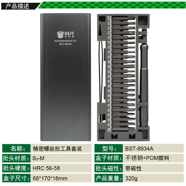 ? 产品名称: 精密螺丝批工具套装? 产品型号: BST-8934A? 产品类别: 套批系列