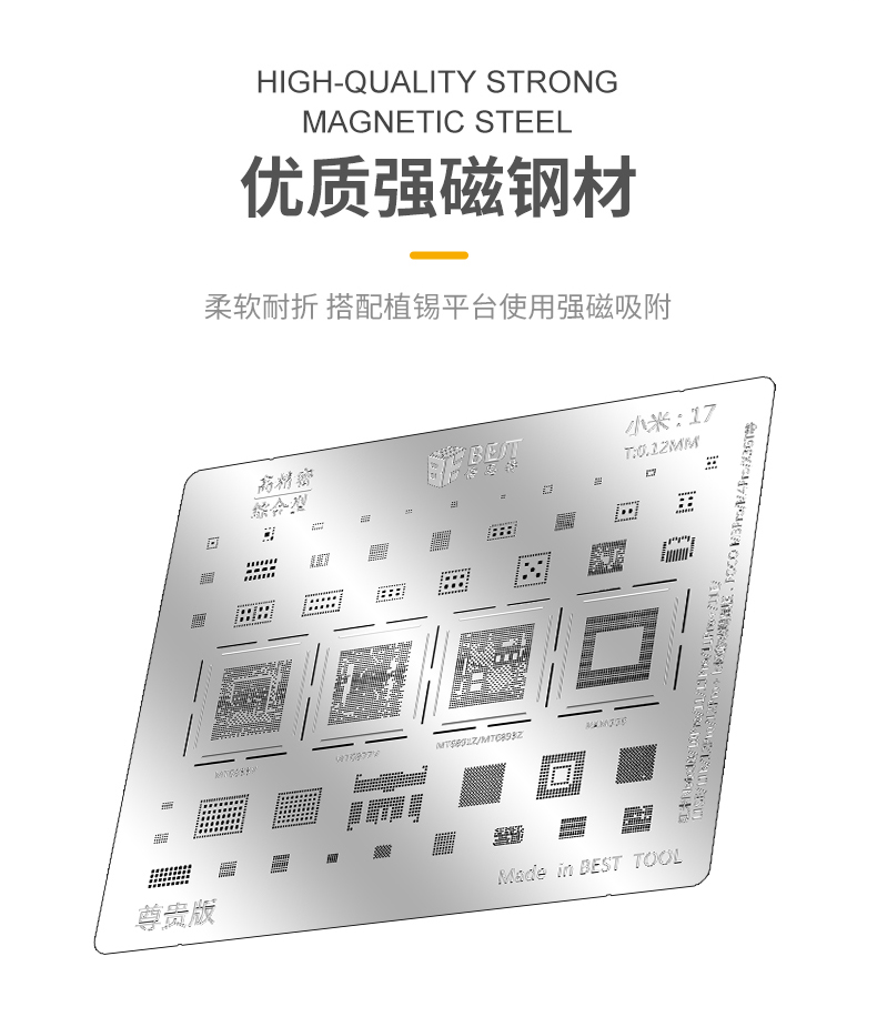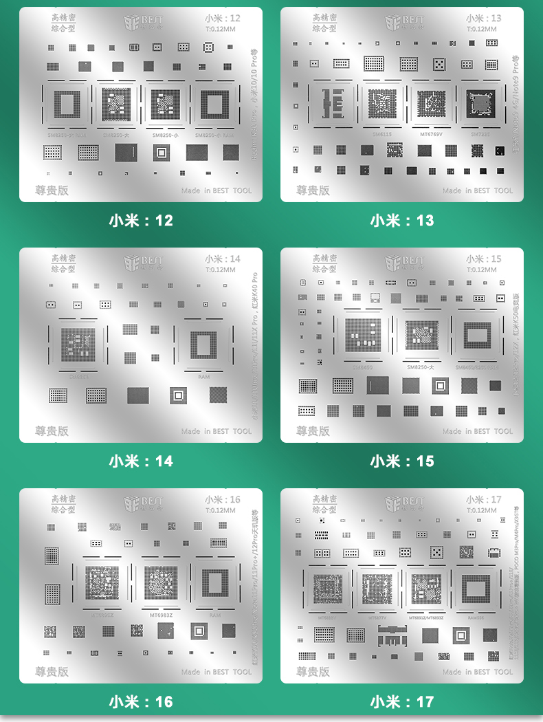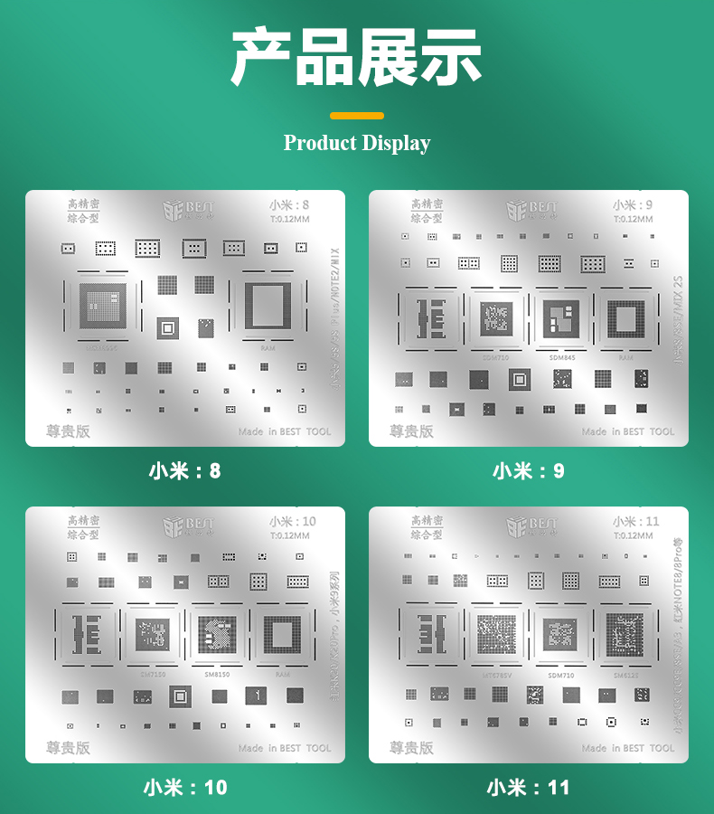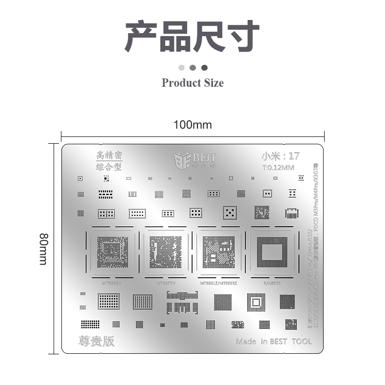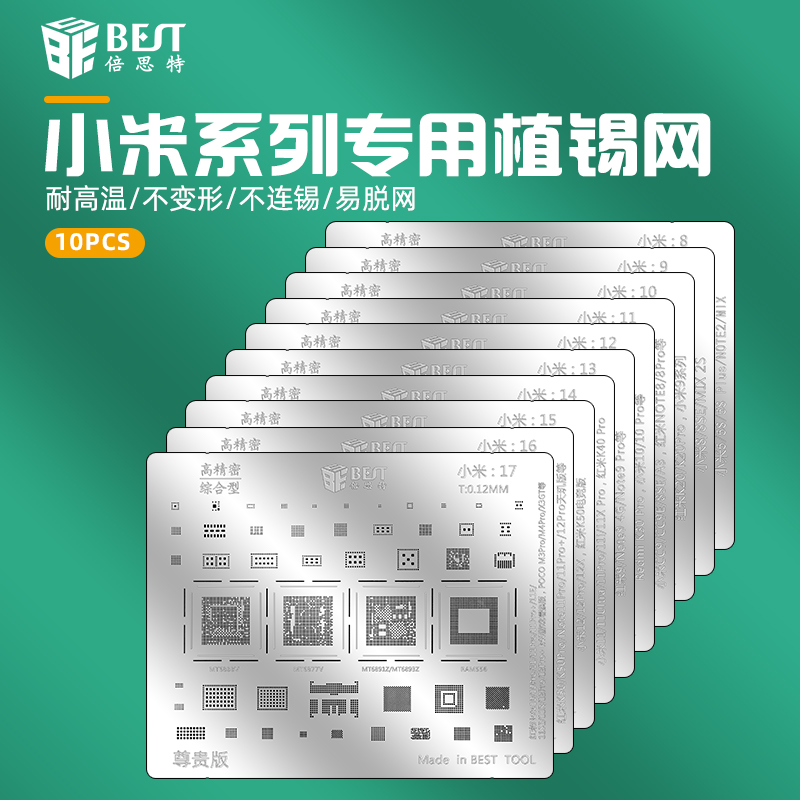 ? 产品名称: 小米植锡网10pcs? 产品型号: BST-MI(小米:8-17)? 产品类别: 植锡网系列