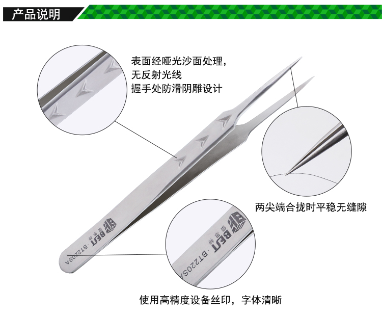 返回当前位置: 首页 / 产品中心 / BST-220SA 亚光镊子 哑光不锈钢镊子
