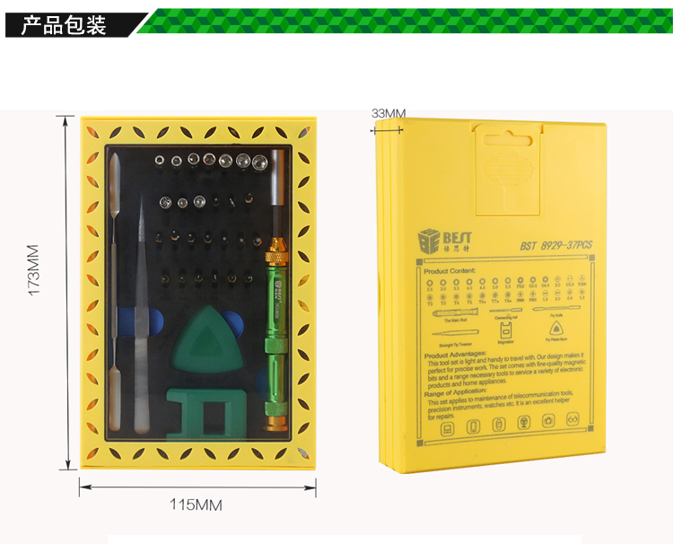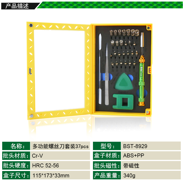 ? 产品名称: 多功能螺丝刀套装37pcs? 产品型号: BST-8929? 产品类别: 螺丝批系列