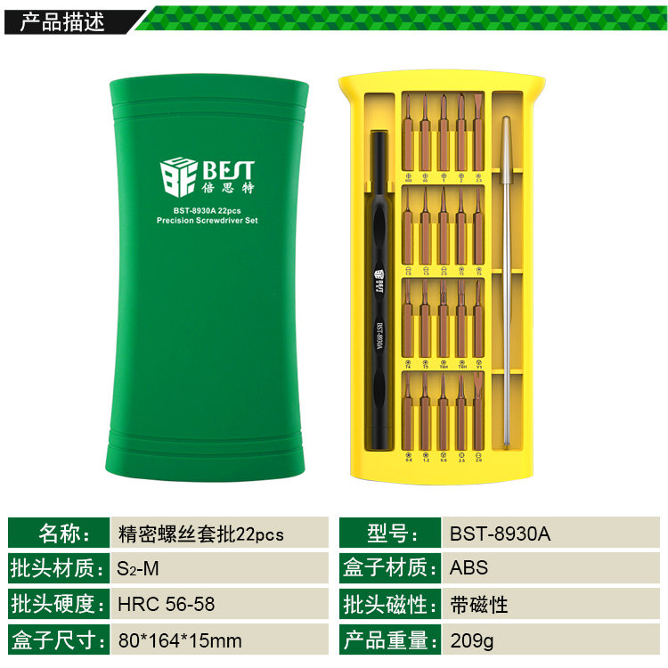 ? 产品名称: 精密螺丝套批22pcs? 产品型号: BST-8930A? 产品类别: 螺丝批系列