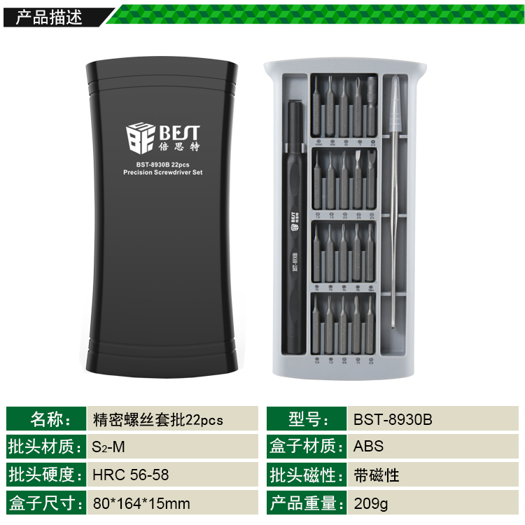 ? 产品名称: 精密螺丝套批22pcs? 产品型号: BST-8930B? 产品类别: 螺丝批系列