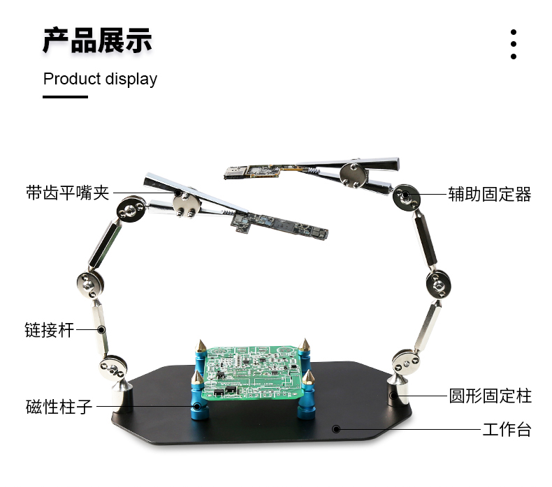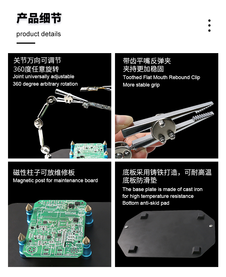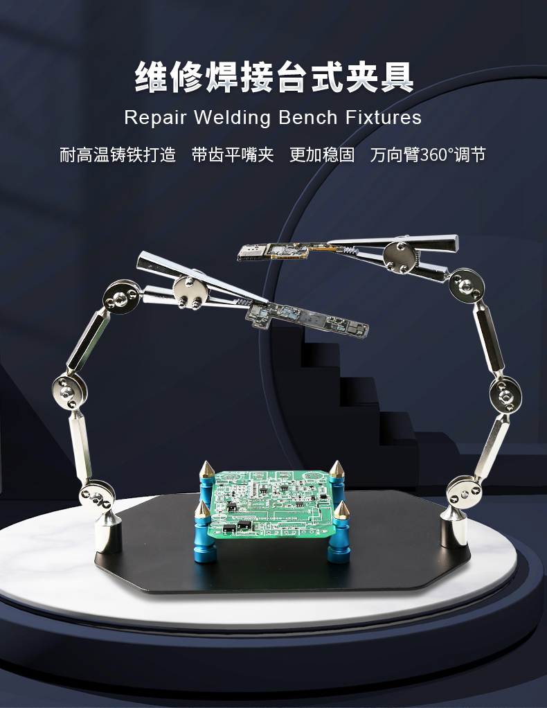 返回当前位置: 首页 / 产品中心 / BST-168K 维修焊接台式夹具 PCB放大镜夹具 万向双头夹 反弹夹 万向双头夹具