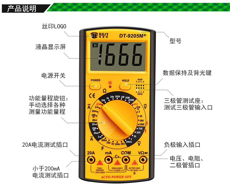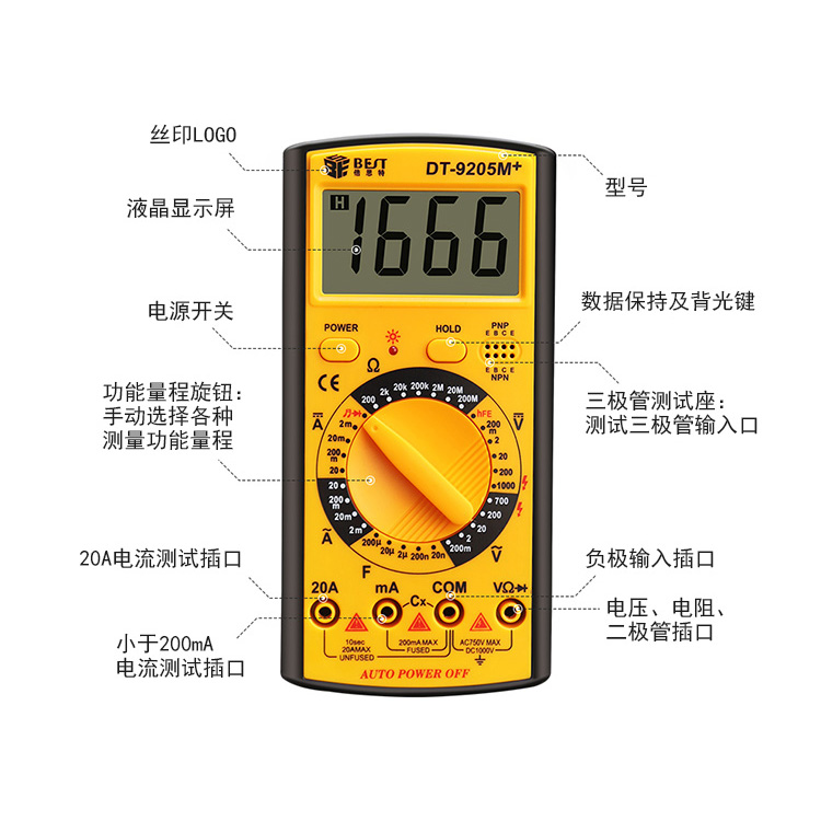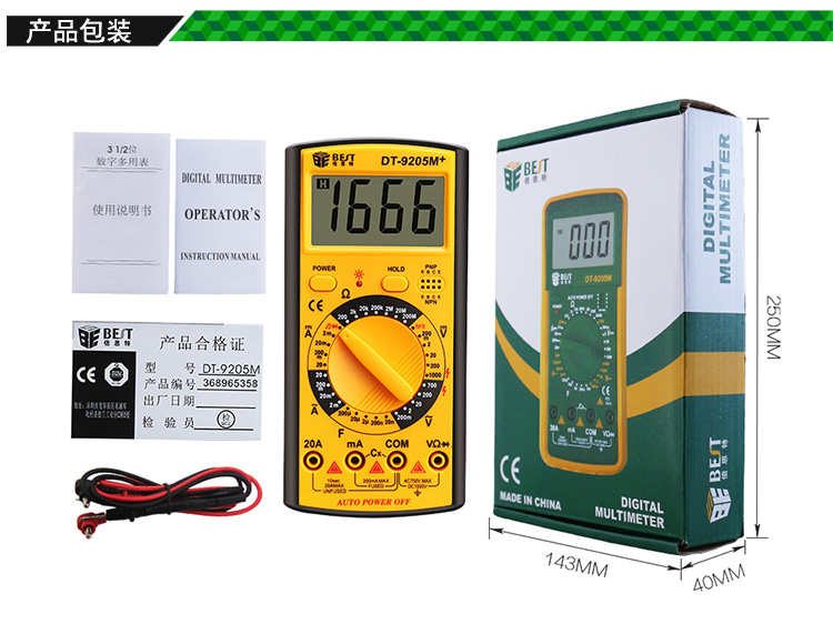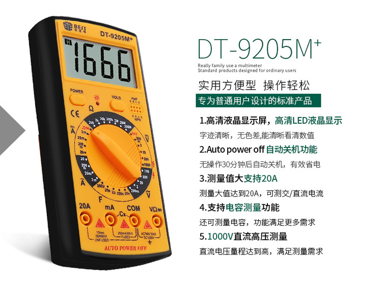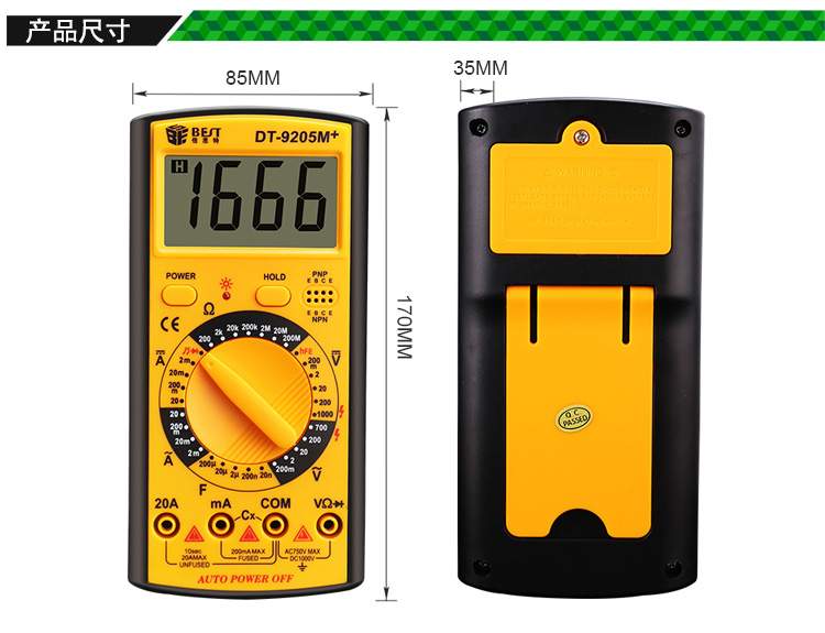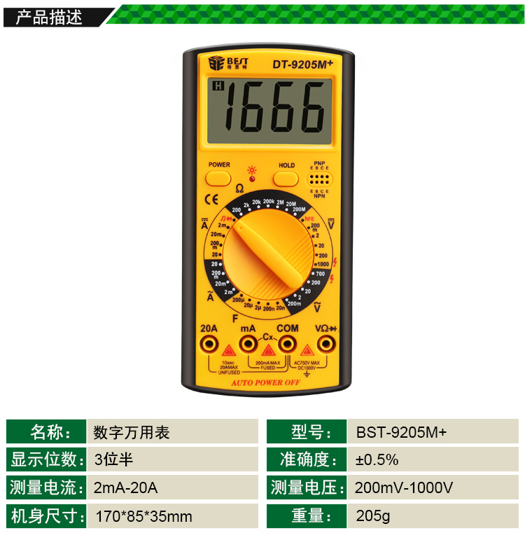 ? 产品名称: 数字万用表? 产品型号: BST-9205M+? 产品类别: 万用表系列