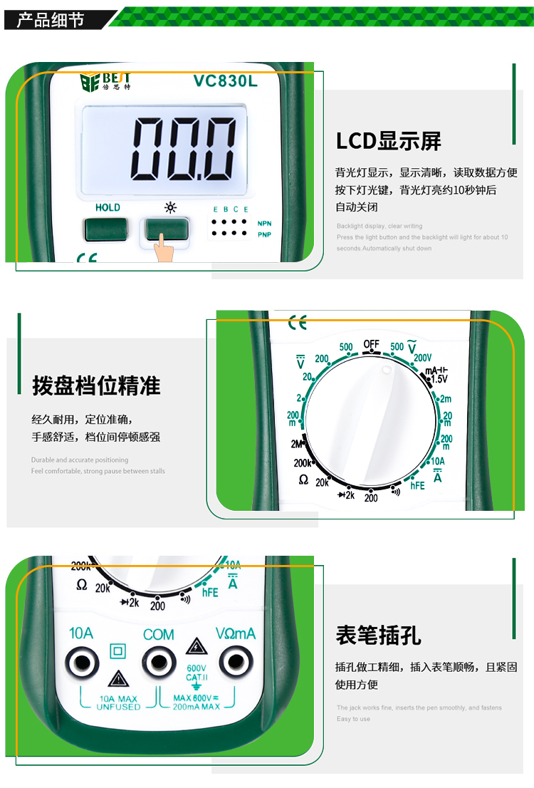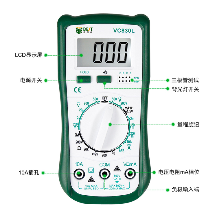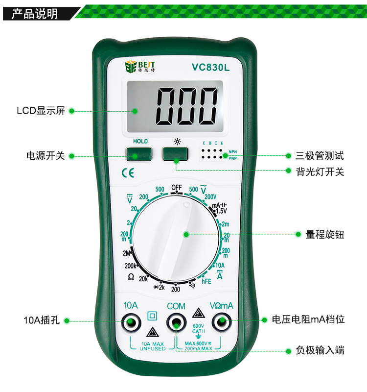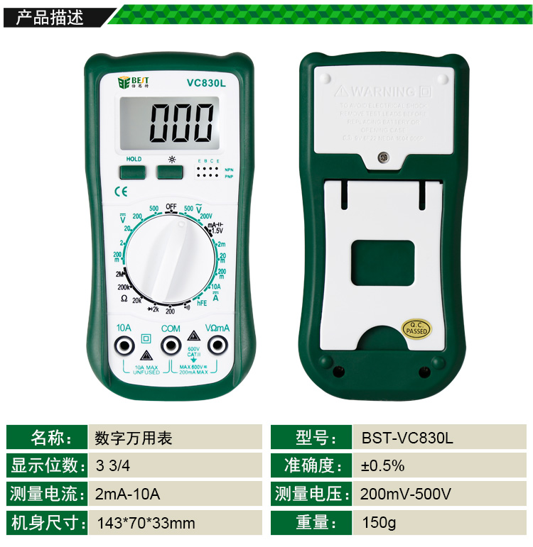 ? 产品名称: 数字万用表? 产品型号: BST-VC830L? 产品类别: 万用表系列