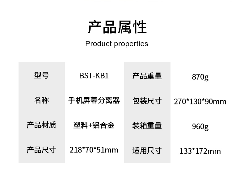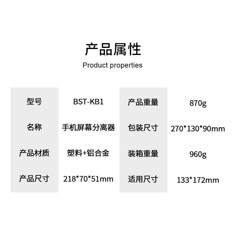 ? 产品名称: 手机拆屏分离器? 产品型号: BST-KB1? 产品类别: 分离拆屏系列