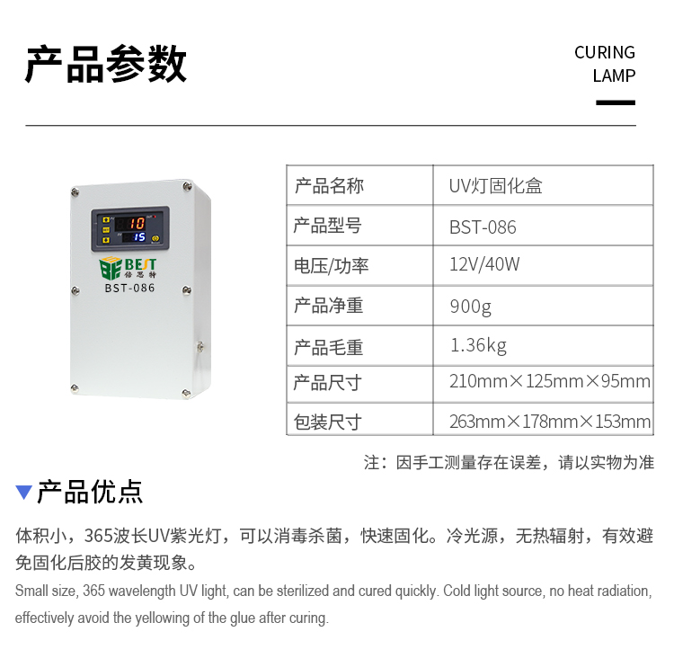 ? 产品名称: UV灯固化盒? 产品型号: BST-086? 产品类别: 紫外灯系列