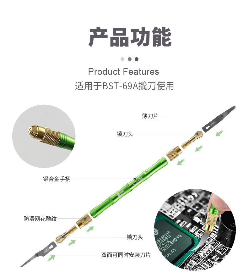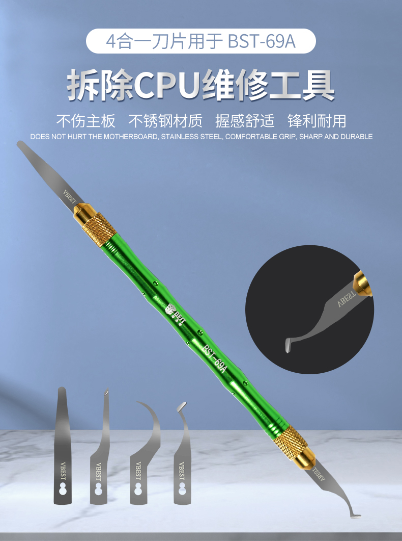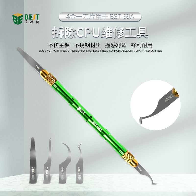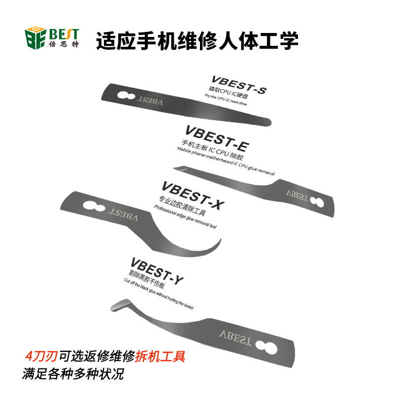 返回当前位置: 首页 / 产品中心 / BST-69A+ 四合一除胶刀套装 手工打磨钨钢刀片 CPU IC 硬盘 手机主板维修 专业除胶撬取工具
