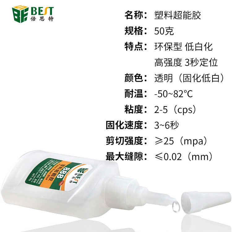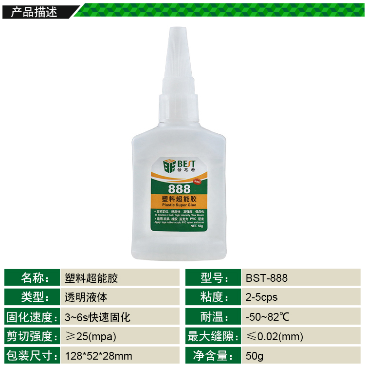 ? 产品名称: 塑料超能胶 瞬间胶? 产品型号: BST-888? 产品类别: 胶水胶纸系列