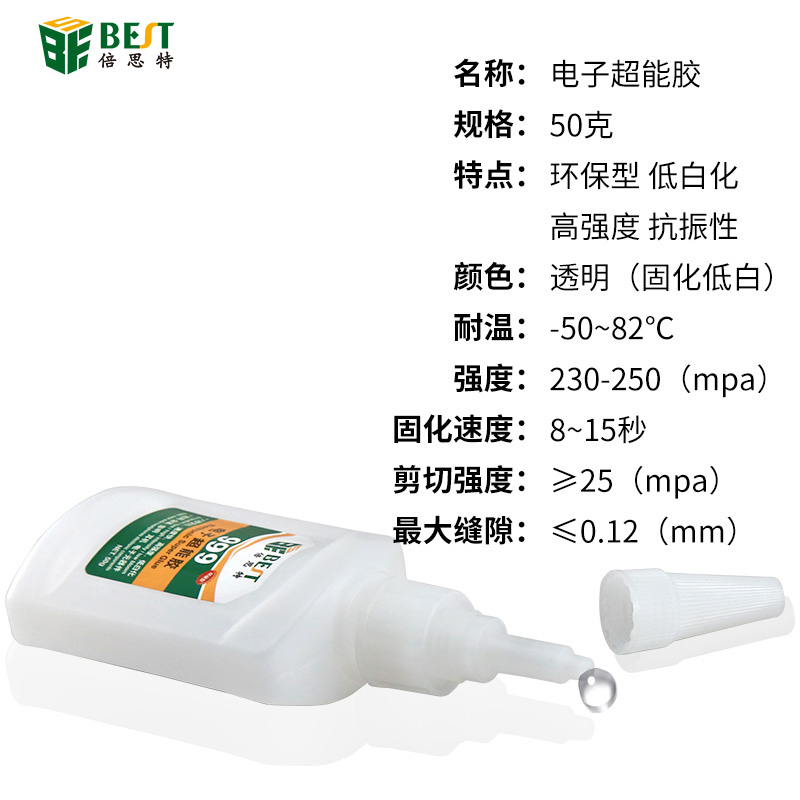 ? 产品名称: 电子超能胶 瞬间胶? 产品型号: BST-999? 产品类别: 胶水胶纸系列