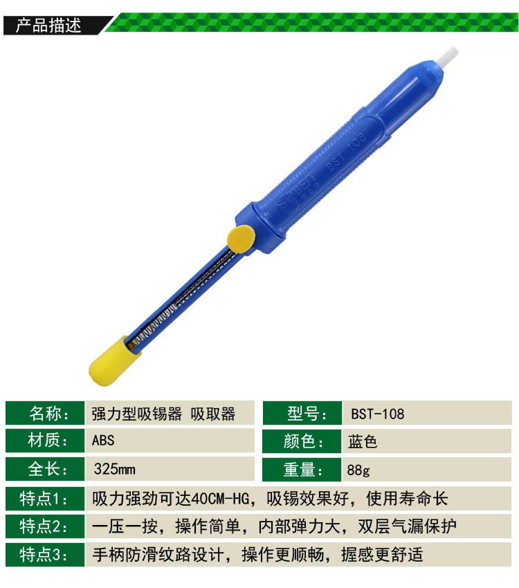 ? 产品名称: 吸取器 吸锡器? 产品型号: BST-108? 产品类别: 吸锡器系列