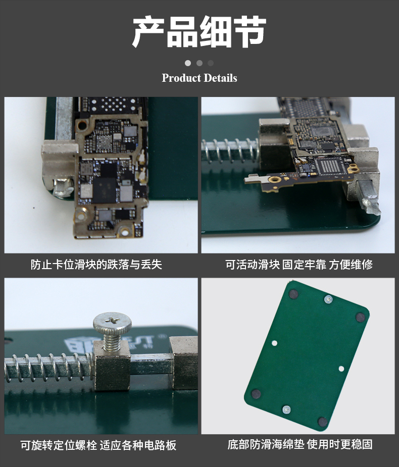 返回当前位置: 首页 / 产品中心 / BST-001B 绿色维修卡具 维修夹具平台