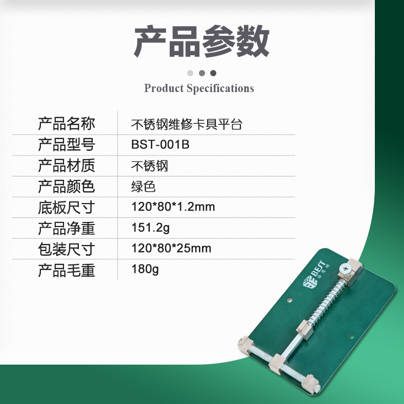 ? 产品名称: 绿色维修卡具? 产品型号: BST-001B? 产品类别: 维修卡具系列