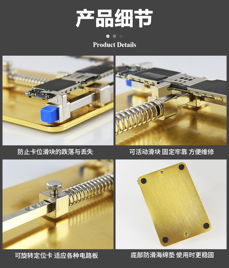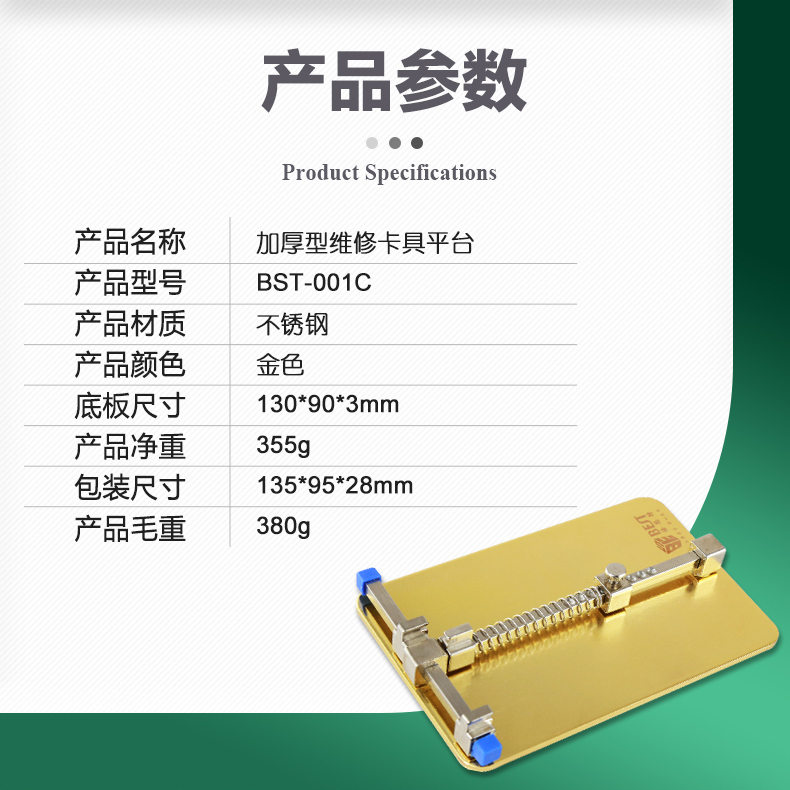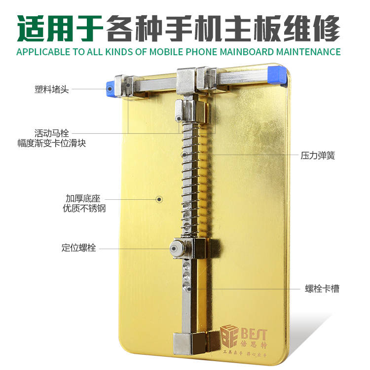 ? 产品名称: 加厚型维修卡具 维修夹具平台(金色)? 产品型号: BST-001C? 产品类别: 维修卡具系列