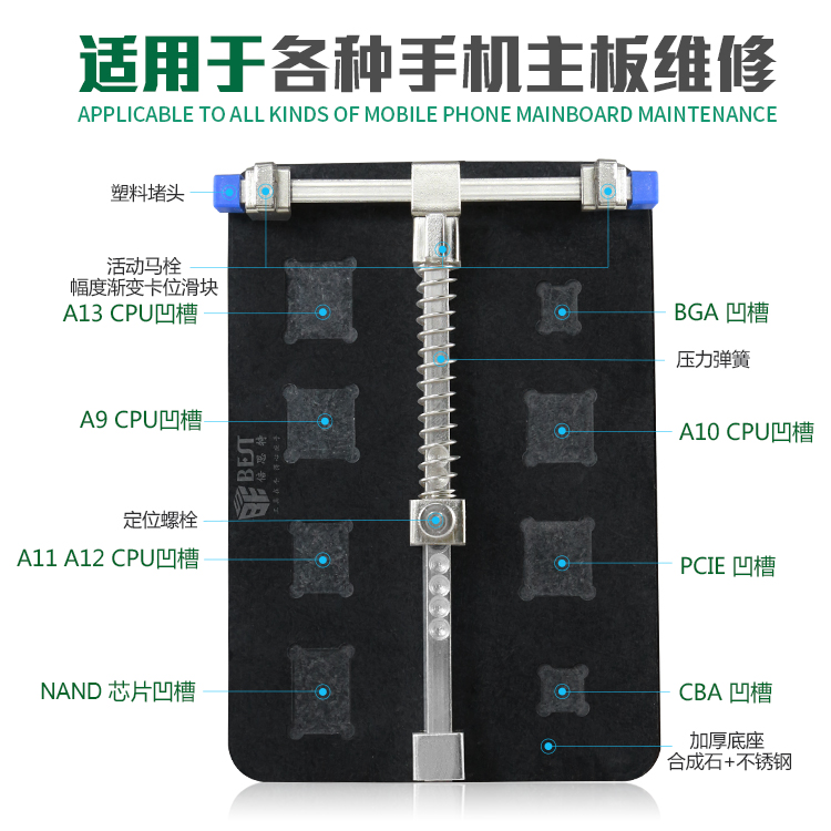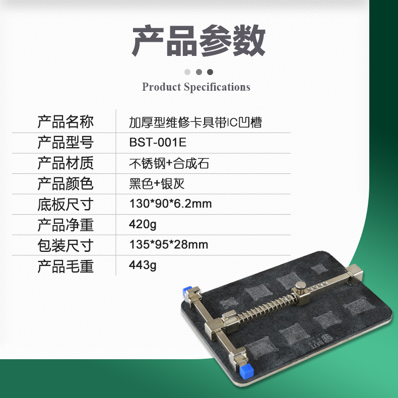 ? 产品名称: 加厚型维修卡具带IC凹槽 维修夹具平台(黑色)? 产品型号: BST-001E? 产品类别: 维修卡具系列