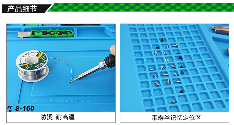 返回当前位置: 首页 / 产品中心 / BST-S-160 耐高温硅胶垫 工作台垫 带磁性收纳区 螺丝记忆定位区 零件收纳盒 隔热垫