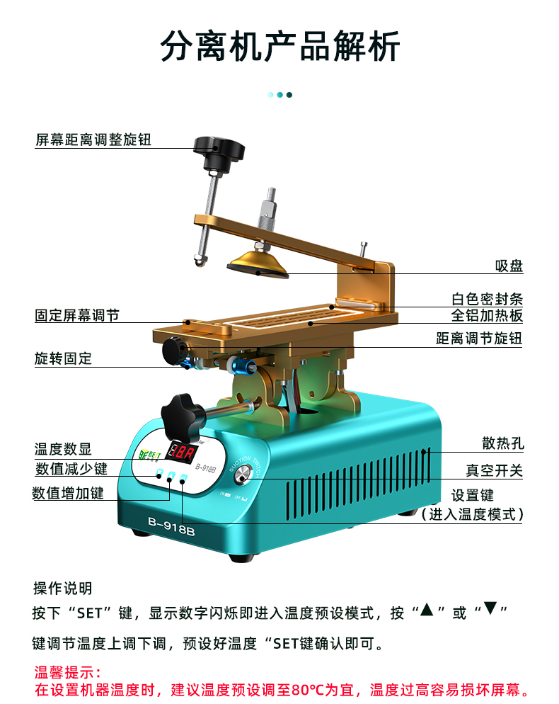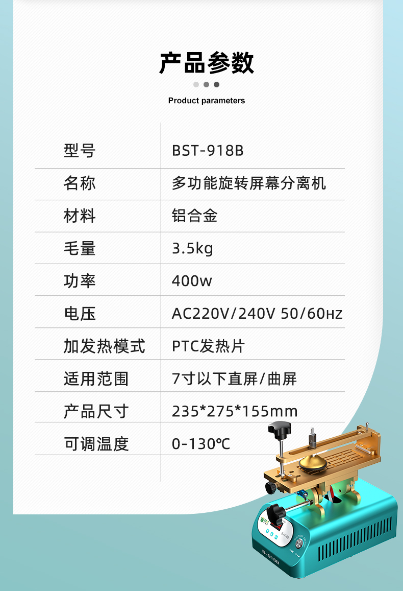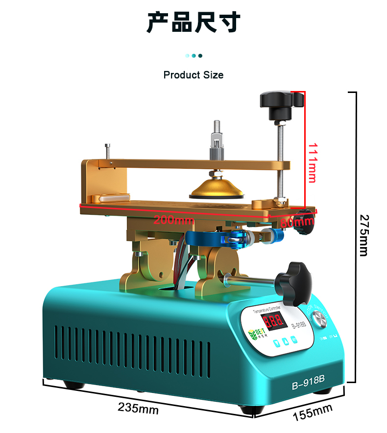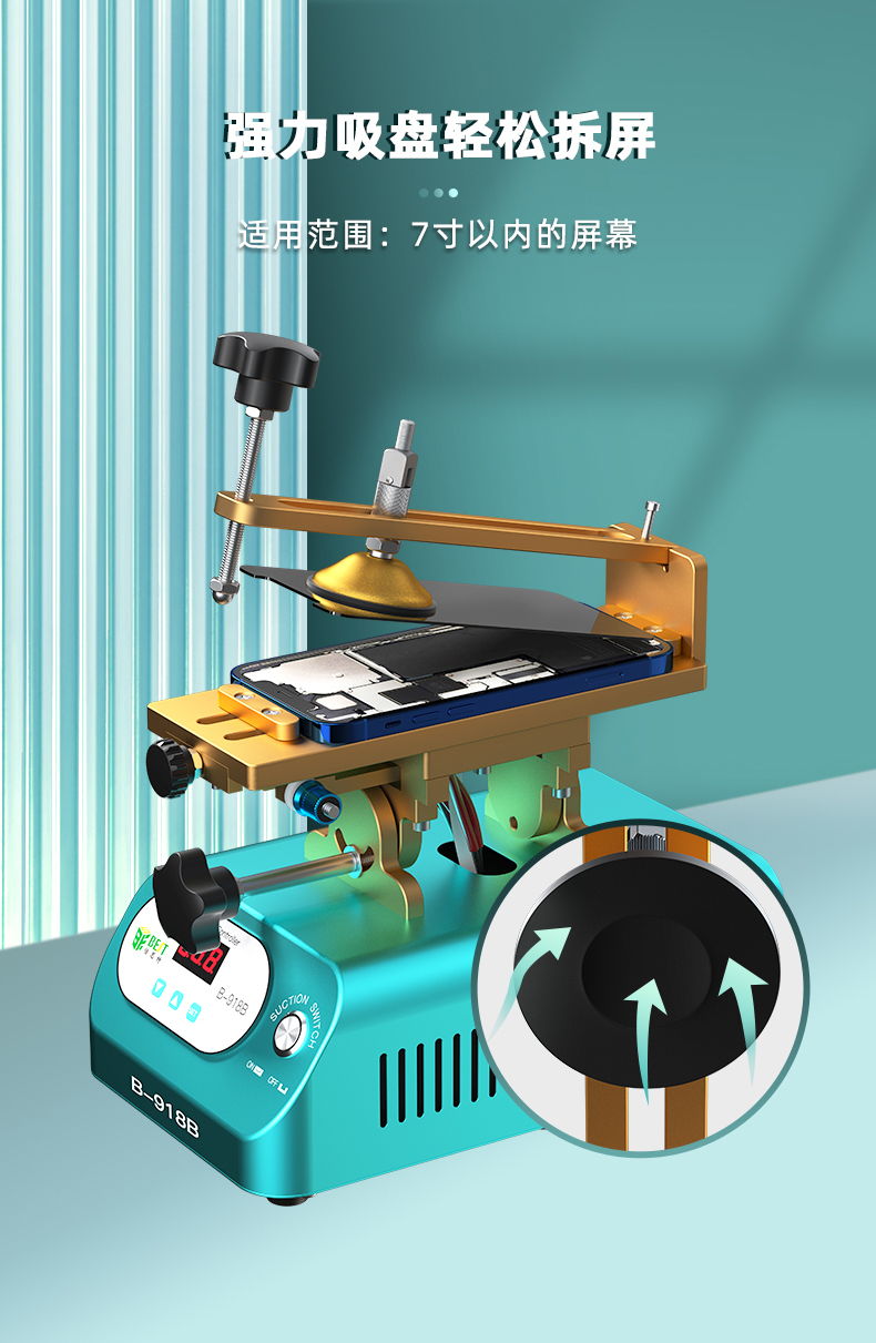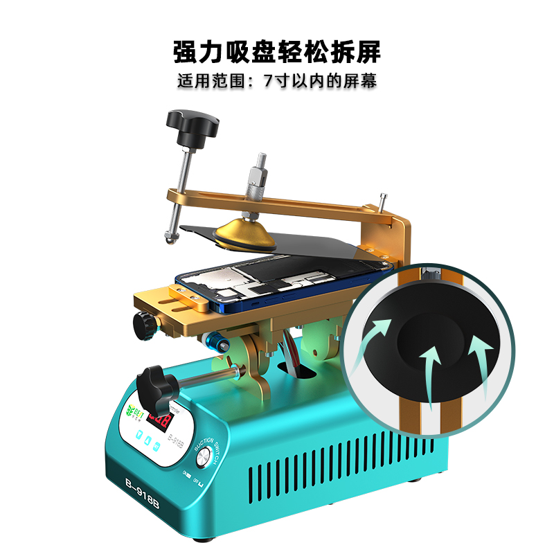 返回当前位置: 首页 / 产品中心 / B-918B 多功能旋转屏幕分离机 曲屏拆离旋转分离机 带吸盘支架