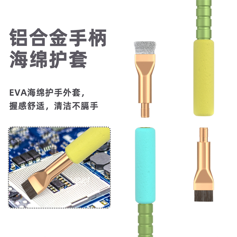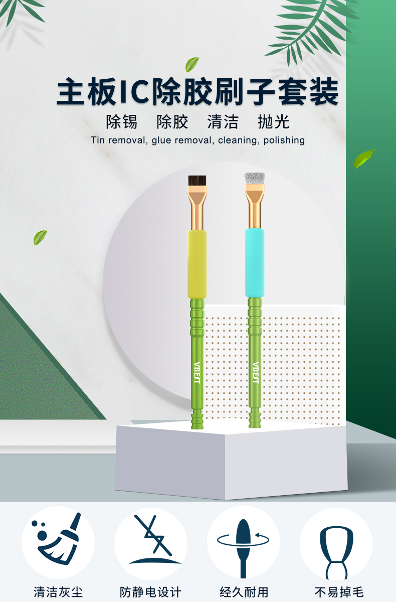 返回当前位置: 首页 / 产品中心 / VBST-81 主板IC除胶刷子套装 不锈钢丝硬毛刷猪鬓毛刷 IC主板除胶清理灰尘海棉套手柄刷 手机焊盘清理毛刷 IC清洁焊油除黑胶硬毛刷两支装