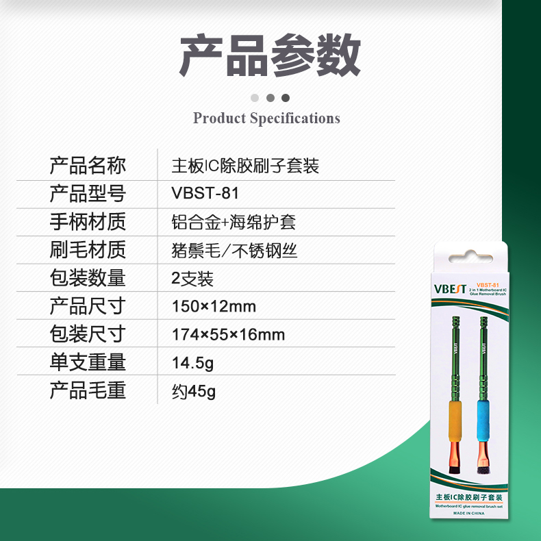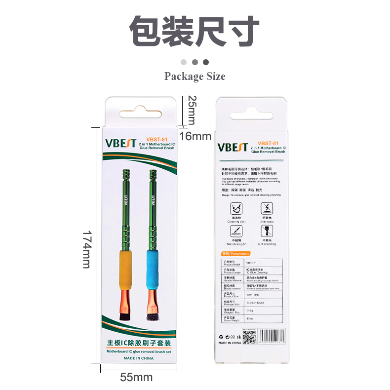 ? 产品名称: 主板IC除胶刷子套装? 产品型号: VBST-81? 产品类别: 清洁系列