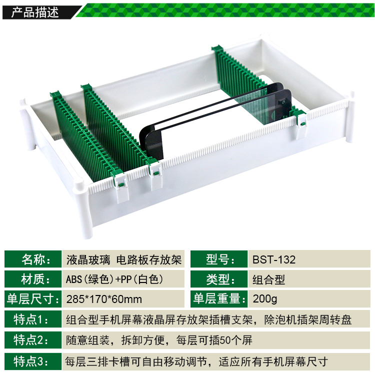 ? 产品名称: 液晶屏电路板托盘架 插槽支架? 产品型号: BST-132? 产品类别: 元件盒系列