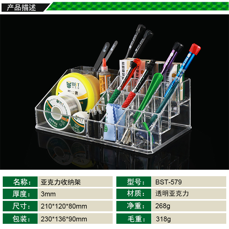 ? 产品名称: 亚克力收纳架 元件收纳盒? 产品型号: BST-579? 产品类别: 元件盒系列