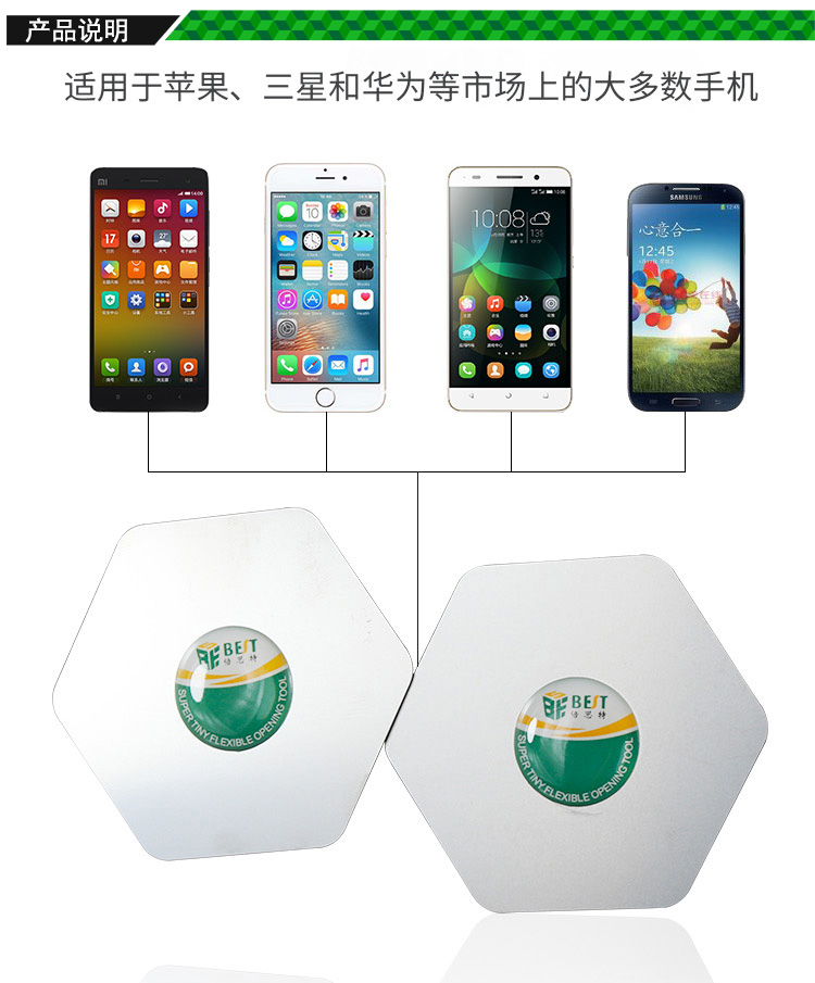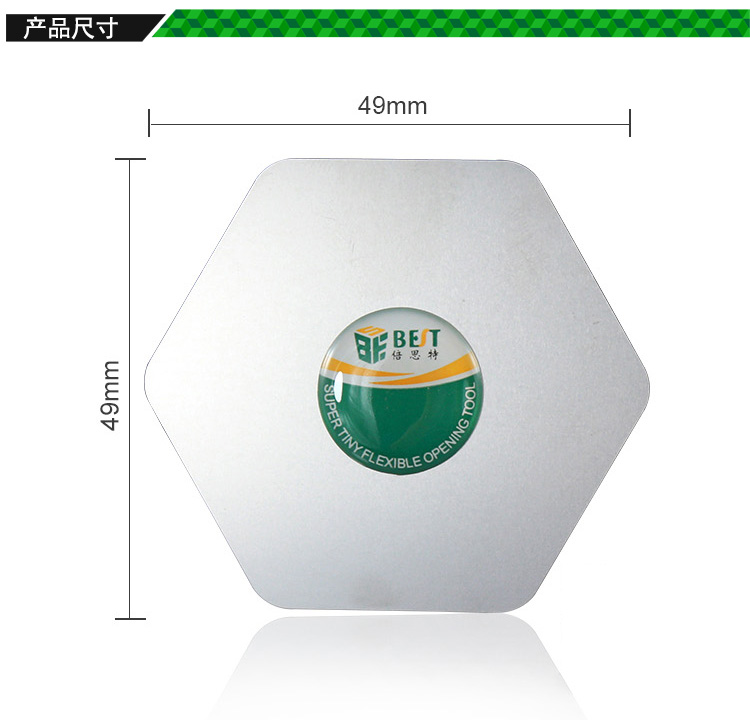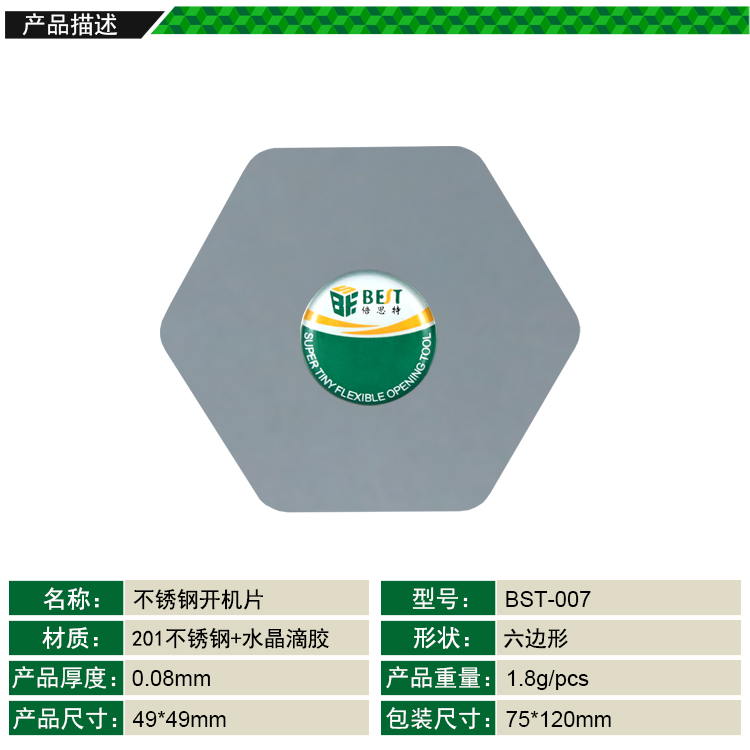 ? 产品名称: 不锈钢开机片(六边形)? 产品型号: BST-007? 产品类别: 撬棒撬片系列