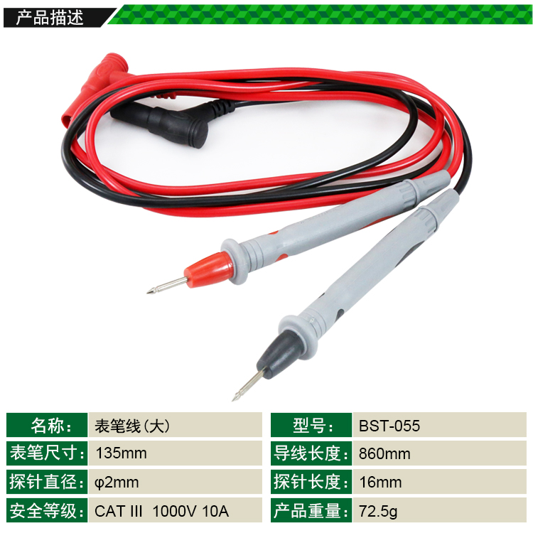 ? 产品名称: 表笔线(大)? 产品型号: BST-055? 产品类别: 表笔线系列