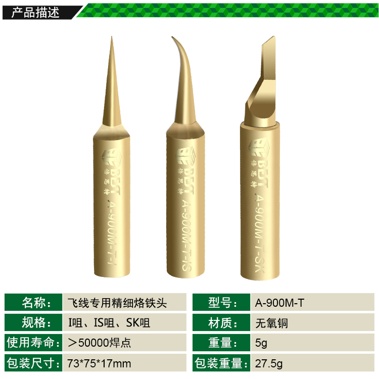 ? 产品名称: 飞线专用精细烙铁头? 产品型号: A-900M-T? 产品类别: 烙铁咀系列