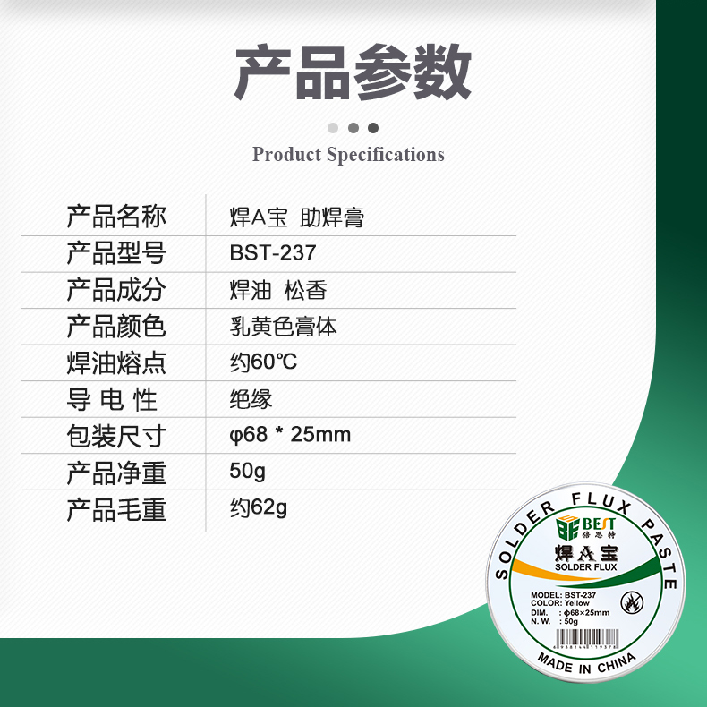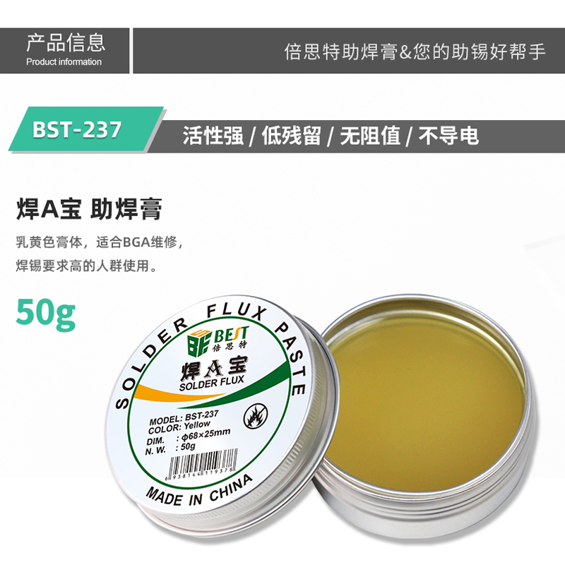 ? 产品名称: 焊A宝50g 助焊膏? 产品型号: BST-237? 产品类别: 锡浆焊油系列