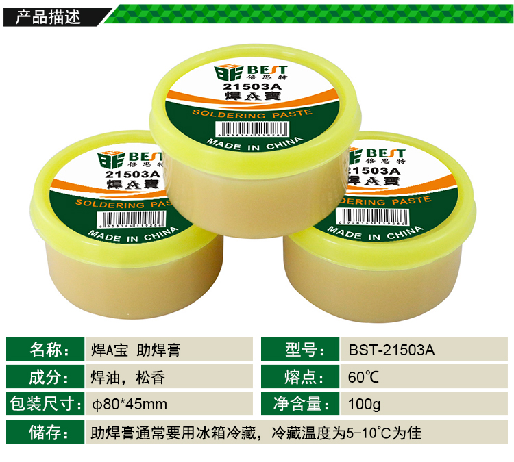 ? 产品名称: 焊A宝 助焊膏? 产品型号: BST-21503A? 产品类别: 锡浆焊油系列