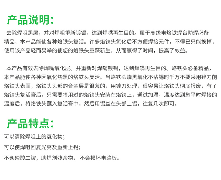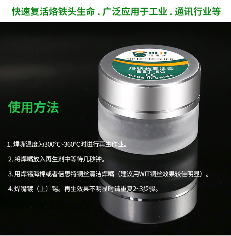 ? 产品名称: 烙铁头复活膏? 产品型号: BST-5G? 产品类别: 锡浆焊油系列