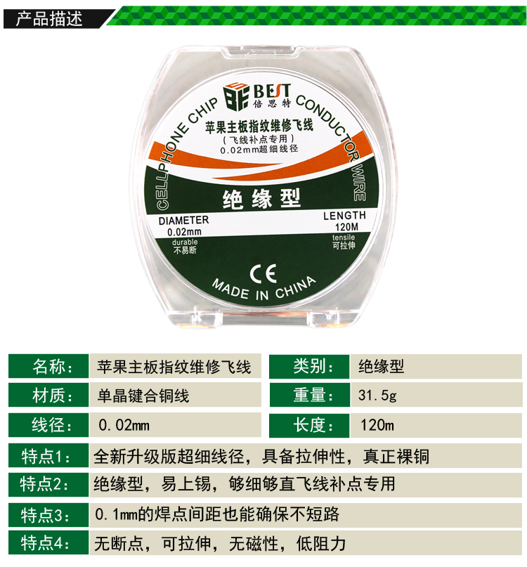 ? 产品名称: 苹果主板指纹维修飞线? 产品品牌: BEST? 产品类别: 锡线耗材系列
