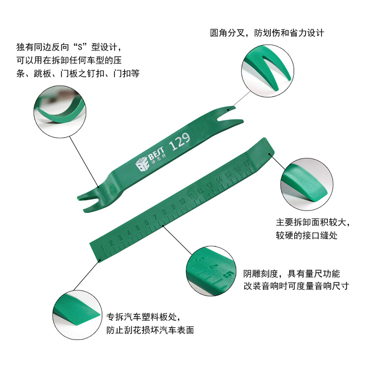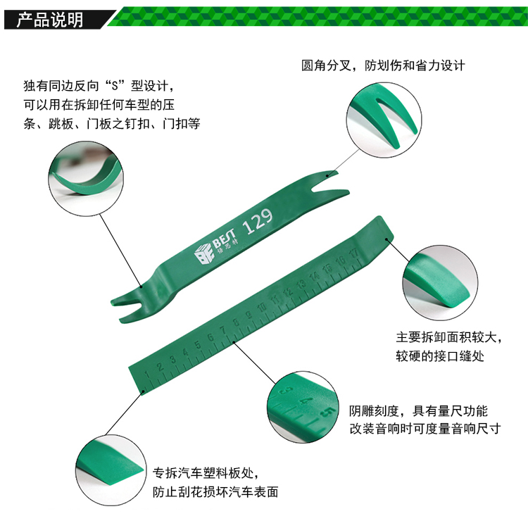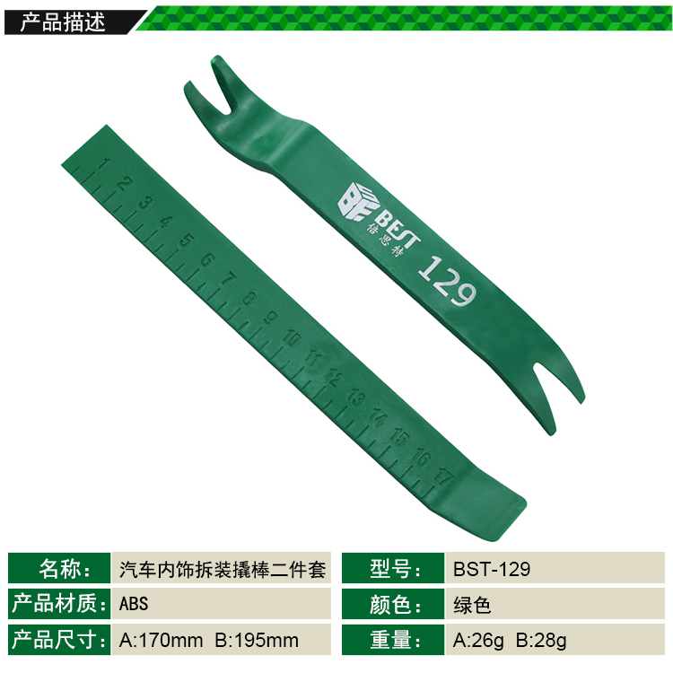 ? 产品名称: 汽车内饰拆装工具二件套? 产品型号: BST-129? 产品类别: 撬棒撬片系列