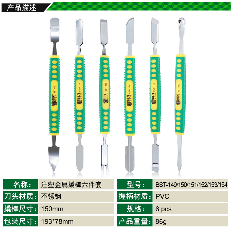 ? 产品名称: 注塑金属撬棒六件套? 产品品牌: BEST? 产品类别: 撬棒撬片系列
