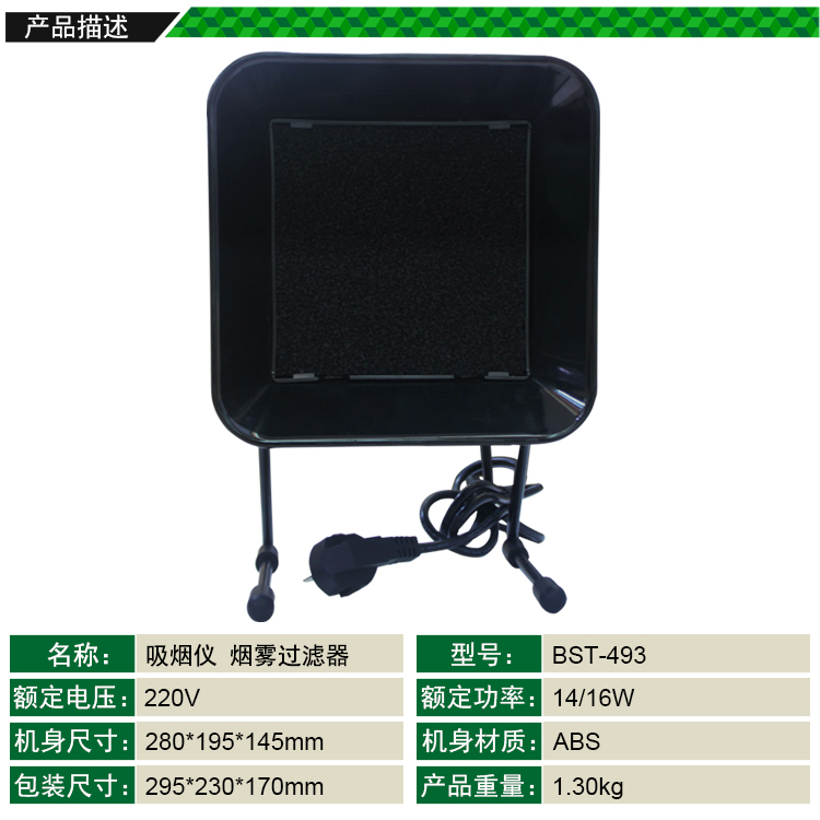 ? 产品名称: 防静电吸烟仪? 产品型号: BST-493? 产品类别: 吸烟仪系列