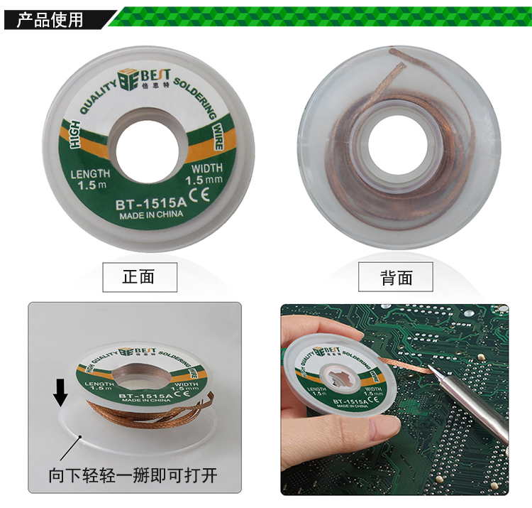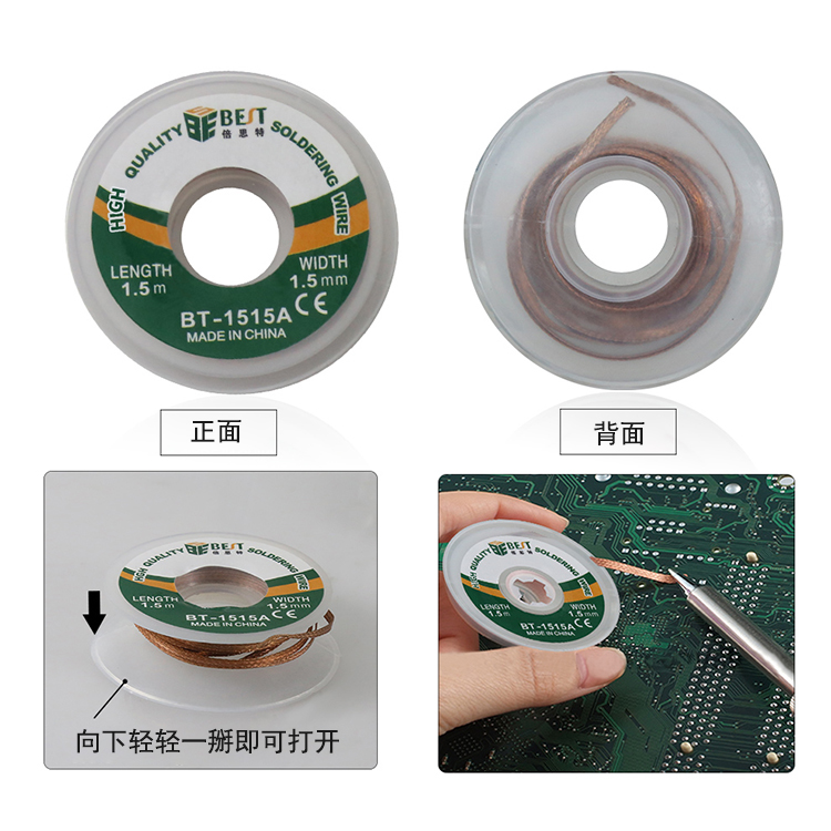 返回当前位置: 首页 / 产品中心 / BST-1515A 吸锡线 非卤素低残渣免清洗吸锡带 清理焊盘必备
