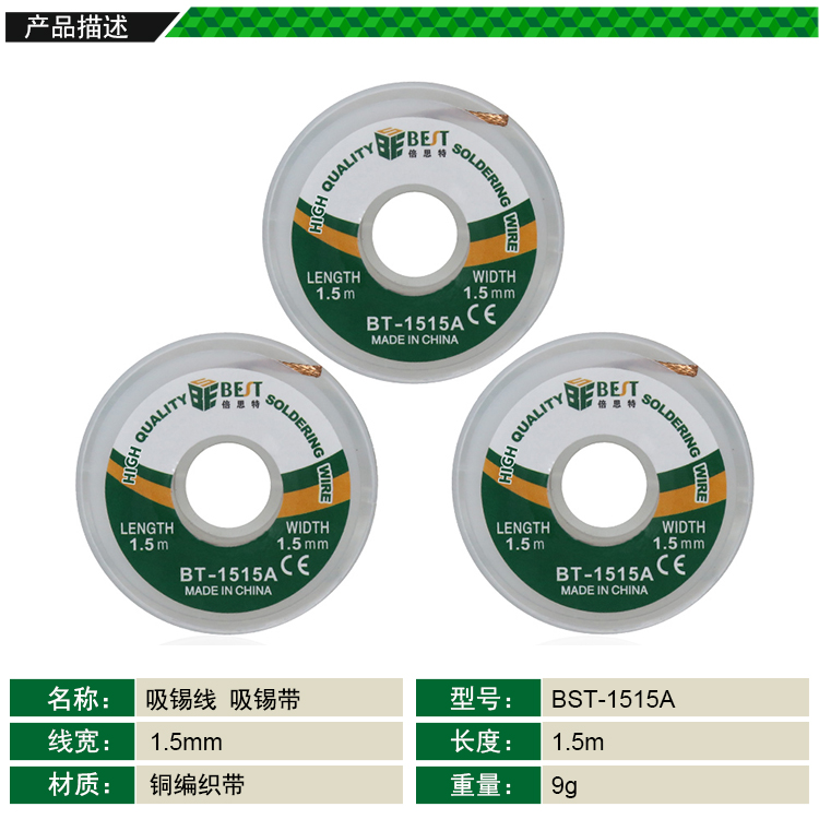 ? 产品名称: 吸锡线 吸锡带? 产品型号: BST-1515A? 产品类别: 吸锡线系列