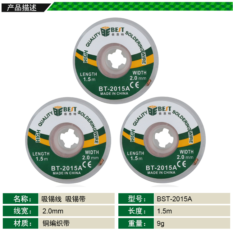 ? 产品名称: 吸锡线 吸锡带? 产品型号: BST-2015A? 产品类别: 吸锡线系列