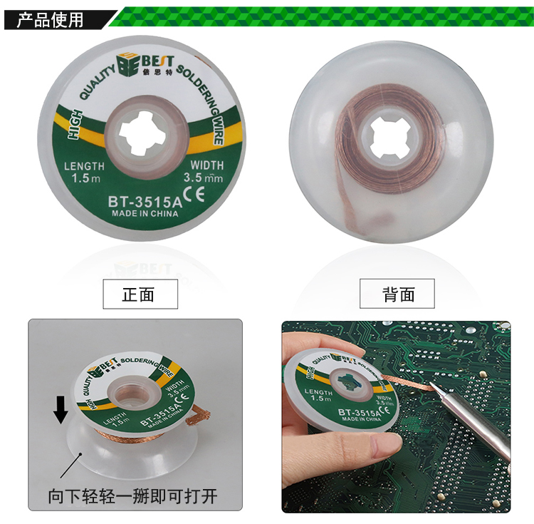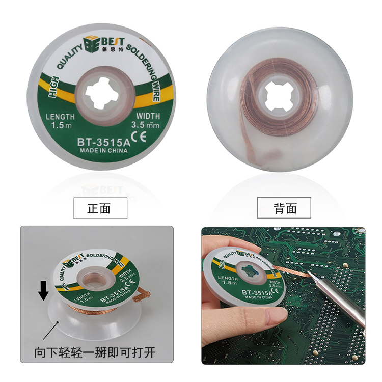 返回当前位置: 首页 / 产品中心 / BST-3515A 吸锡线 非卤素低残渣免清洗吸锡带 清理焊盘必备